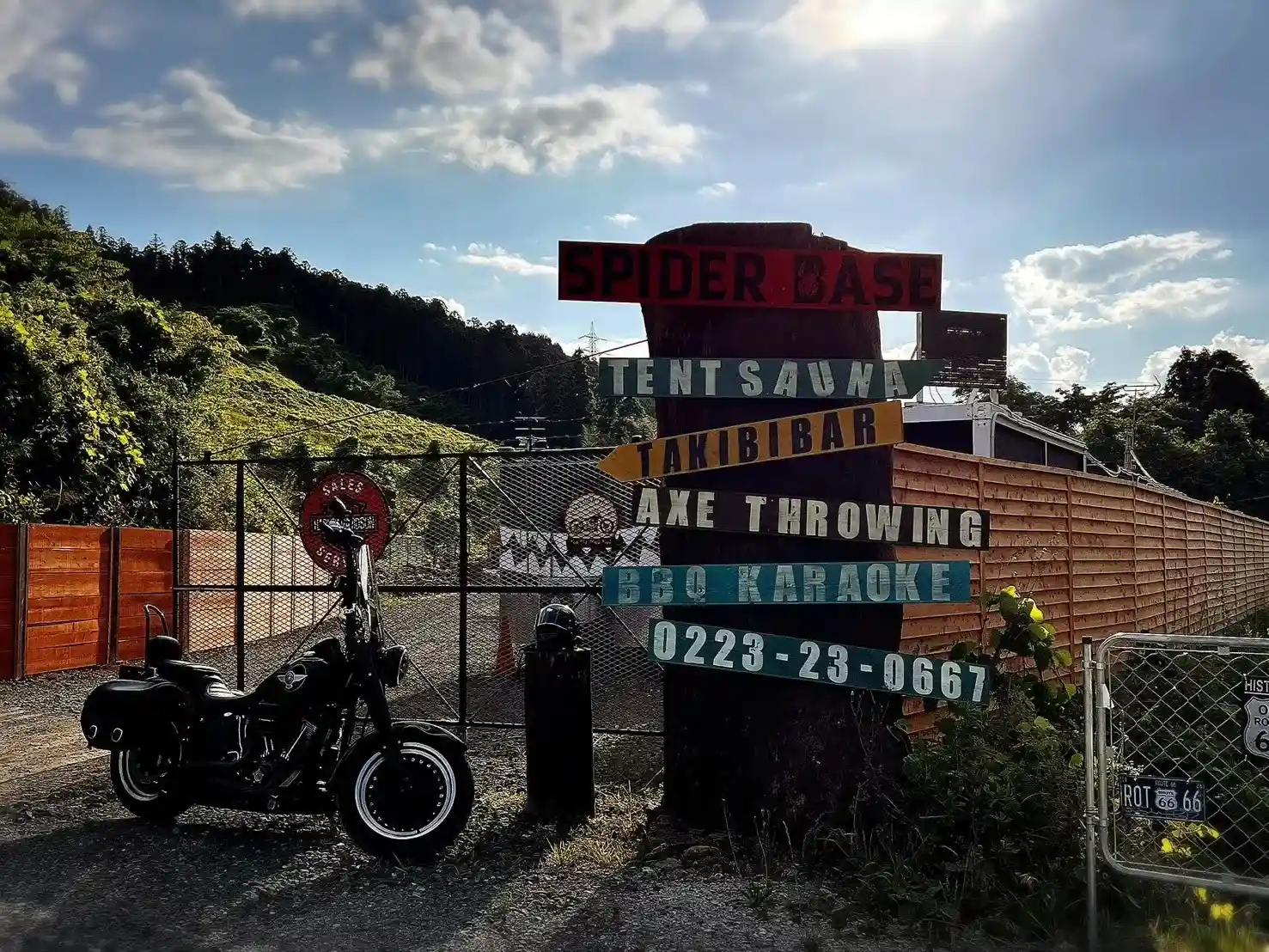 その奥にはテントサウナなどの体験型施設が複数並んでおり、様々な体験ができるSPIDER BASE 体験型展示場となっております。