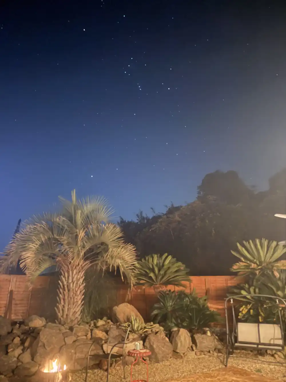 エントランスから進んで、左にはキャンピングトレーラー。右手正面にはコンテナモデルハウスがあり、その向かいには庭園スペース・ジャグジーがあります。