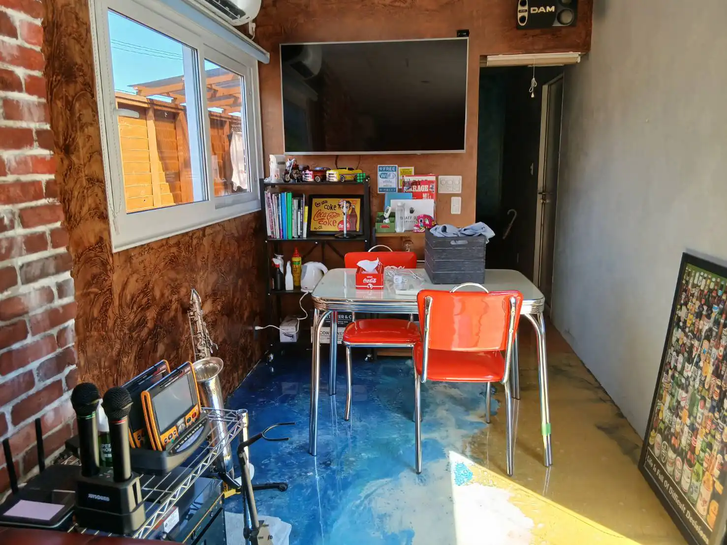 エポキシで床やテーブルを施工し特殊塗装を施せば、コンテナとは思えないほどラグジュアリーな空間を演出します。