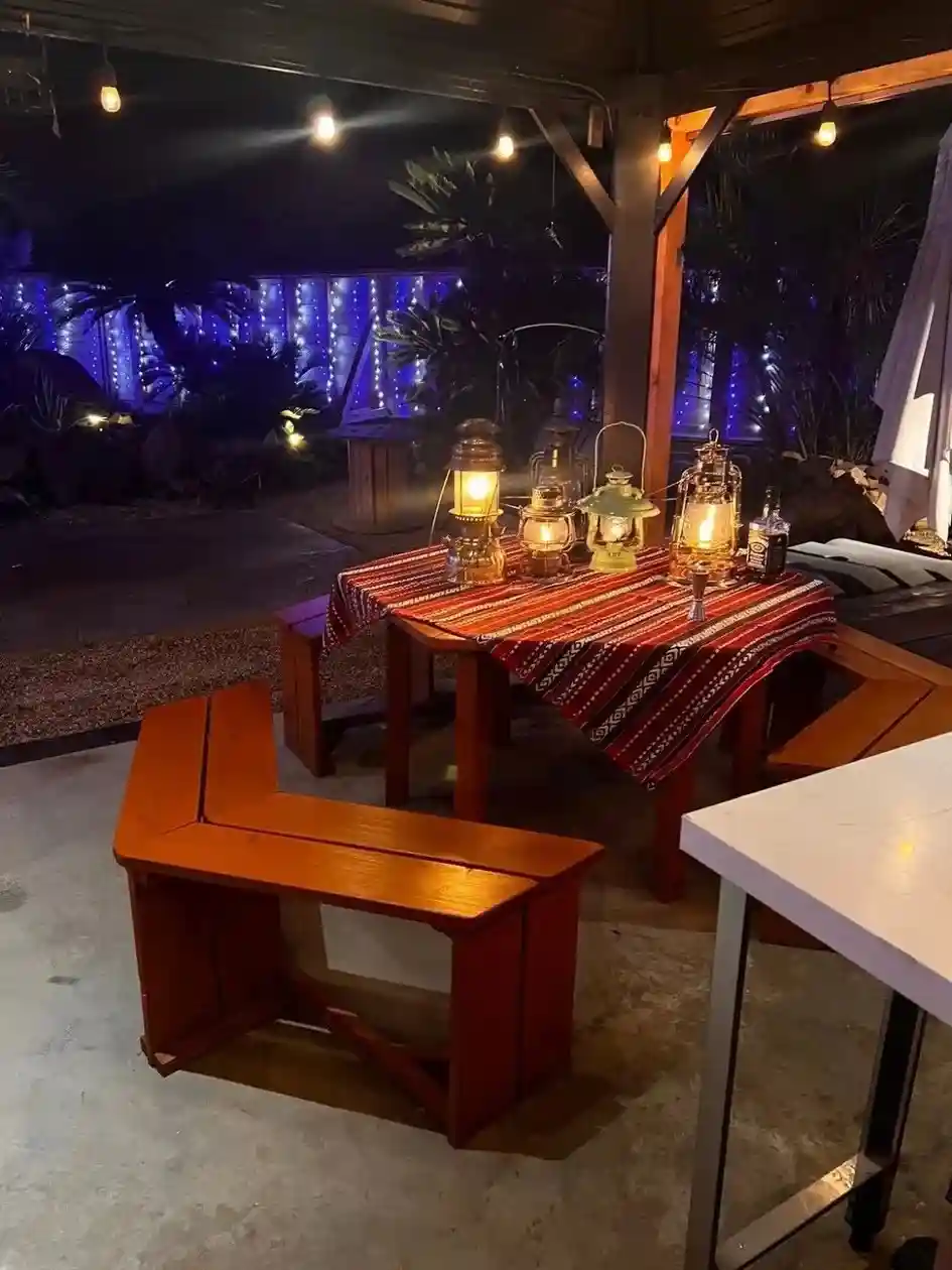 コンテナハウス内は特殊塗装のSANDECO、モルタル造形を施しており、インスタ映えするおしゃれな空間となっております!